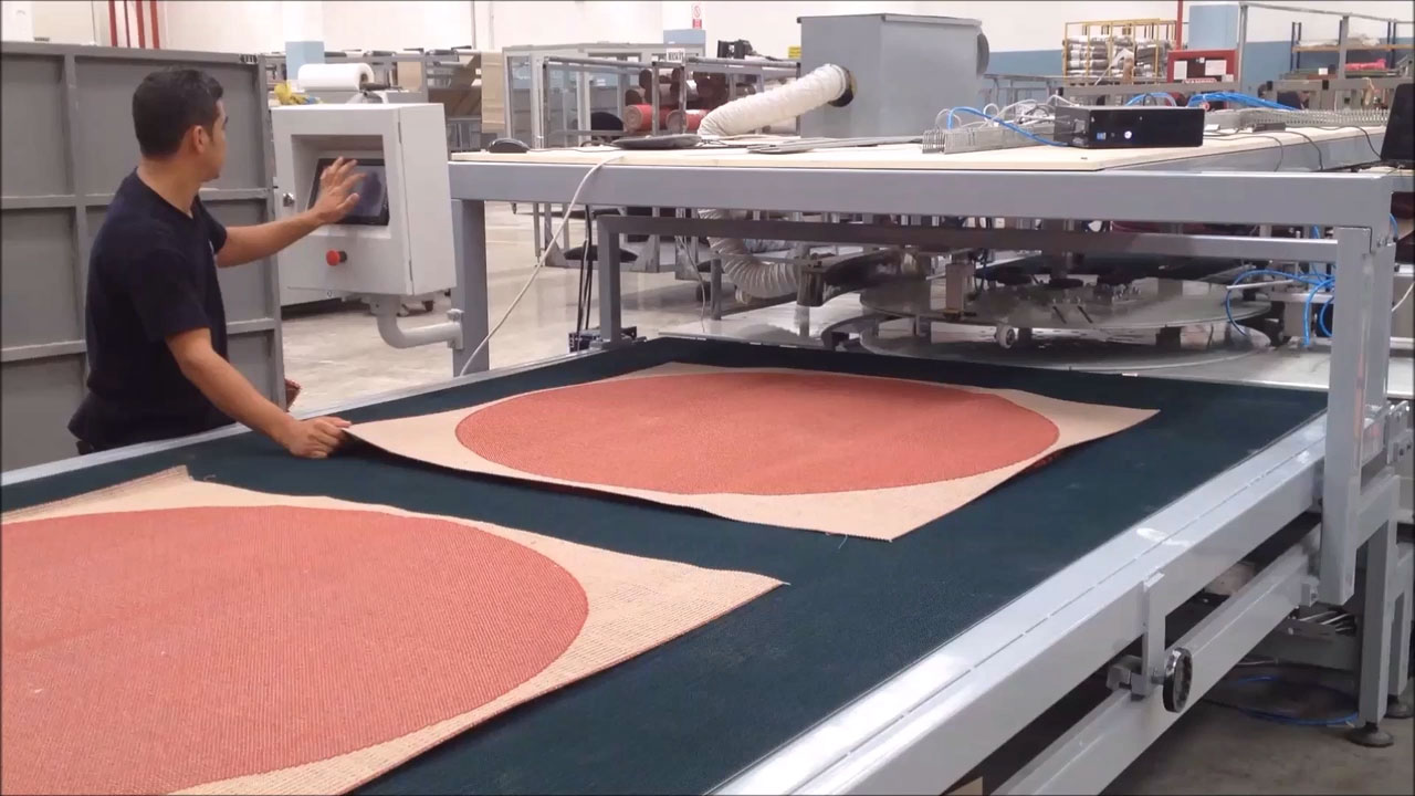 Kameralı dairesel halı kesim makinesi, dairesel piston ünitesinin sağa ve sola hareket ederek açılıp kapanması suretiyle minimum 130 cm ve maksimum 200 cm çapında dairesel halı kesebilme fonksiyonuna
