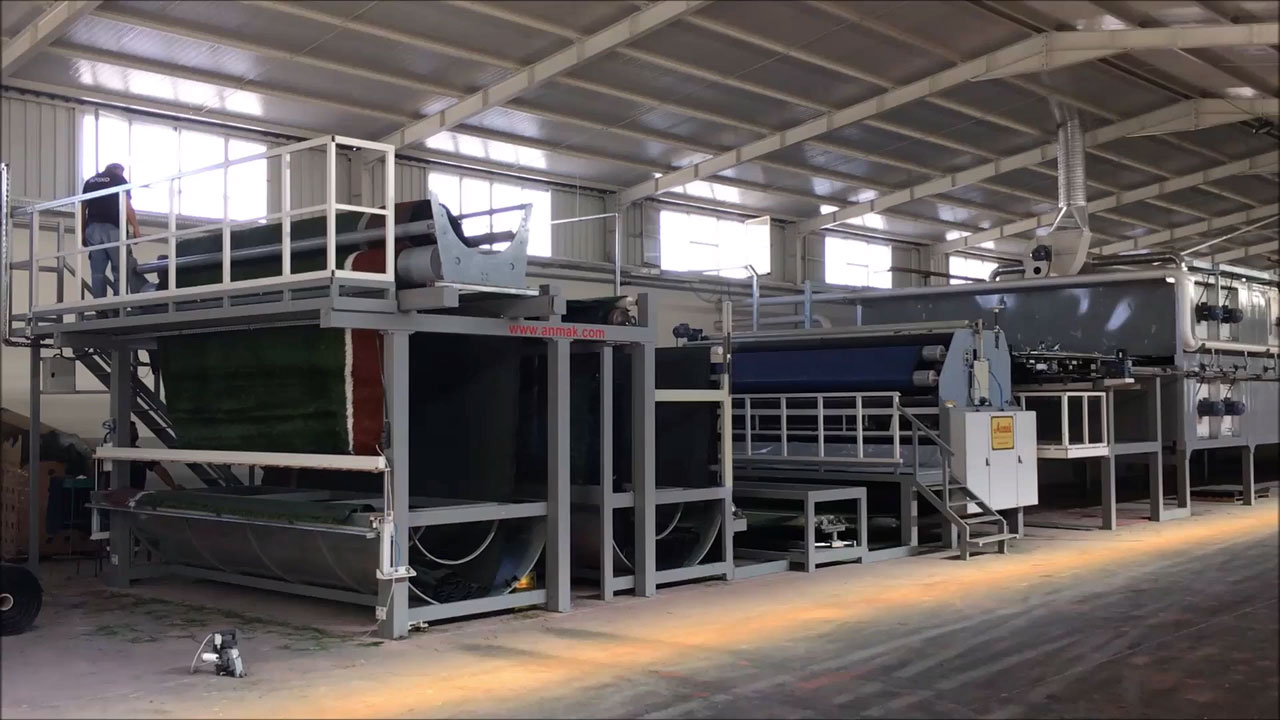 Dünyada yaygın olarak futbol sahalarında ve çevre düzenlemelerinde kullanılan çim halıların tabanına kaplama yapmaya yarayan makinelerdir. Hız kontrollü olarak çalışan makine dokumadan çıkan çim halının tabanına ikinci bir yüzey kaplama prensibiyle çalışır. Ama Futbol sahalarında ve çevre düzenlemelerinde kullanılan çim halıya mukavemet ve dayanıklılık kazandırmaktır. Ayrıca çim halıya suni çim taban kaplama makinesi sayesinde açılan yağmur suyu delikleriyle yağmur suyunun toprak veya zeminle buluşması sağlanır.